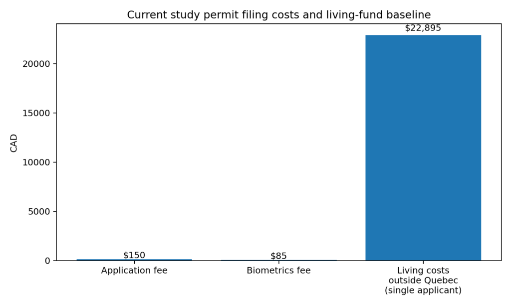 As of the current IRCC fee schedule, the study permit application fee is CAD $150 and biometrics usually adds CAD $85. Restoration cases cost more because the applicant must pay the restoration amount plus the new study permit fee. Students should also budget for medicals, translations, tuition deposits, police certificates, courier charges, and any professional help needed to strengthen the case.